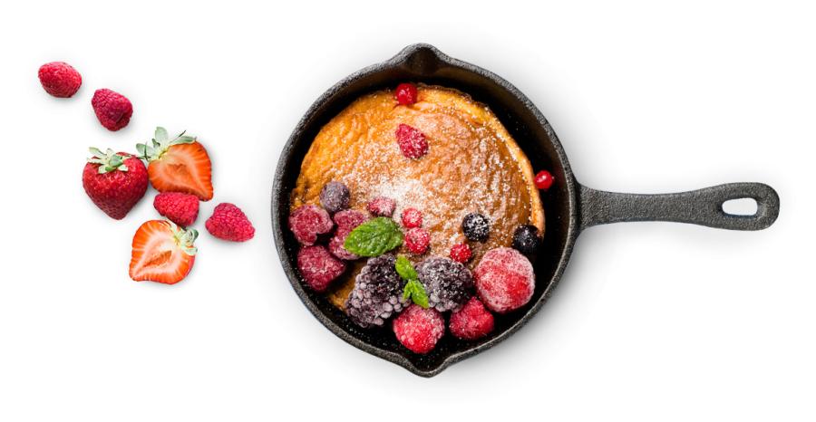 Enjoy breakfast all day long. We are glad to take your reservations. Call us at + 555 - 12 34 678 or come by the store.
